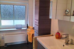 100 qm große Ferienwohnung mit 2 Schlafzimmern, Wohnzimmer, Küche, Bad mit Dusche, Gäste WC und ein Balkon.